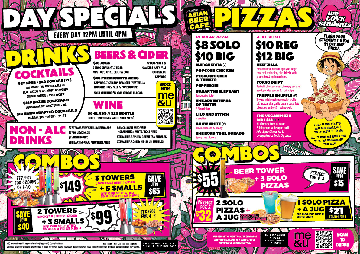 MELBOURNE’S BEST DAY HAPPY HOUR HAPPY HOUR SPECIALS EVERY DAYopen – 4pm Grab these daily deals: Pizza + Pint for $18 $27 Cocktail Jugs $12 Margaritas $13 House Beer Jugs Favourite Pizzas from $8 Catch the vibes early on Level 3! 🍕🍻 FULL MENU BOOK NOW